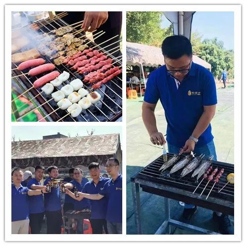 中午,大家在团建基地自助烧烤,充满野性和豪爽,一起合作烧烤,氛围火热。